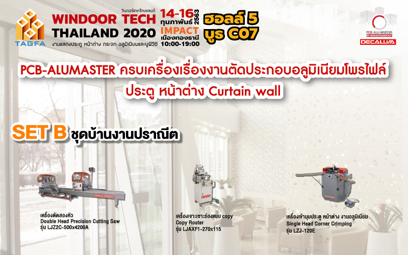 มองหาอนาคตที่มั่งคงไปกับงานประตูหน้าต่าง facade curtain wall อลูมิเนียม ปรึกษา pcb-alumaster ได้ในงาน Windoor Tech Thailand 2020 ณ IMPACT เมืองทองธานี